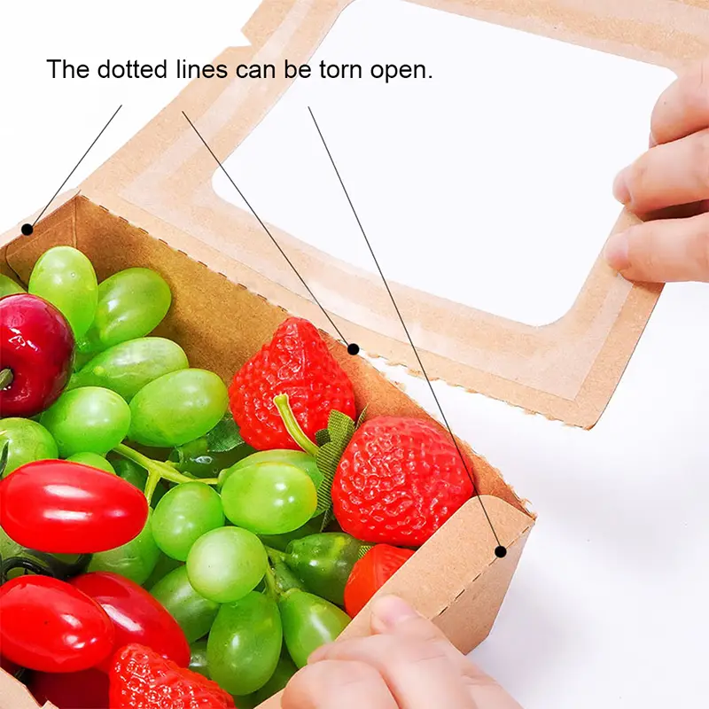ফ্লিপ কভার ডিজাইন এই 1200ml ডিসপোজেবল উইন্ডো পেপার ফুড বক্সটিকে ব্যবহার করার জন্য আরও সুবিধাজনক করে তোলে। উচ্চ-স্বচ্ছ প্লাস্টিকের উইন্ডোটি সম্পূর্ণ খাবারকে স্পষ্টভাবে প্রদর্শন করতে পারে, উল্লেখযোগ্যভাবে দৃষ্টি আকর্ষণ এবং ক্রয়ের ইচ্ছা বাড়ায়। সহজে টিয়ার ডটেড লাইন ডিজাইন গ্রাহকদের অতিরিক্ত উপকরণ অপসারণ করতে সক্ষম করে, টেবিলে খাবার ভাগ করে নেওয়ার সময় স্থান বাঁচায়। স্ন্যাপ ডিজাইন কভার এবং নীচের মধ্যে একটি শক্ত বন্ধ নিশ্চিত করে।