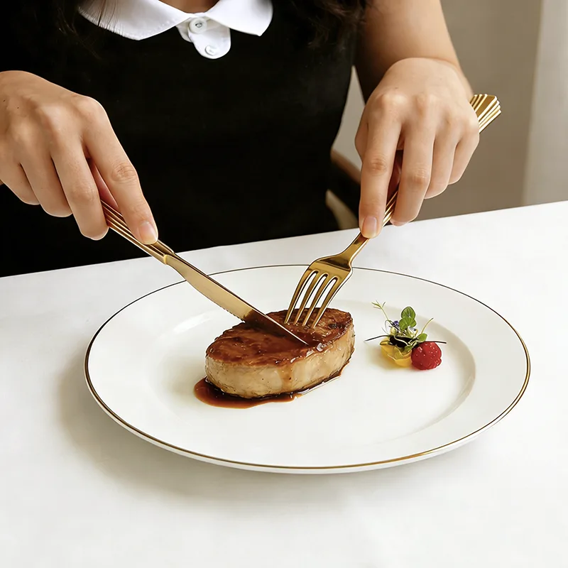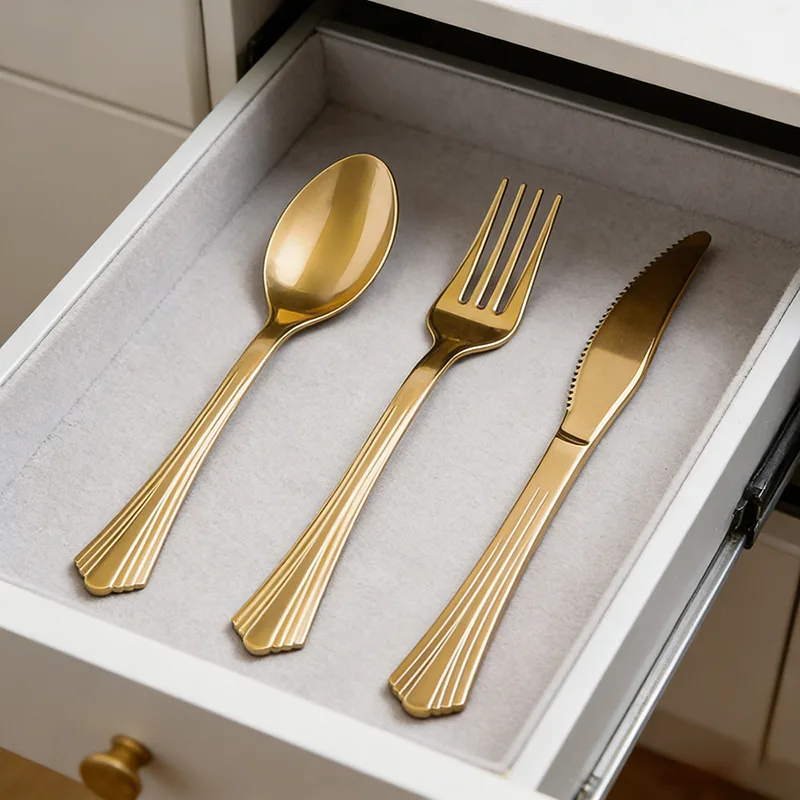 সোনার আবরণ সমানভাবে প্রতিটি প্রান্তকে ঢেকে রাখে, যাতে টেবিলওয়্যারটি আলোর নীচে সূক্ষ্ম আলো এবং অন্ধকার স্তর প্রতিফলিত করতে পারে। এটি প্লাস্টিক উপাদানকে ধাতব টেবিলওয়্যারের মতো একটি টেক্সচার উপস্থাপন করতে সক্ষম করে, সম্পূর্ণরূপে সস্তাতার অনুভূতি দূর করে।